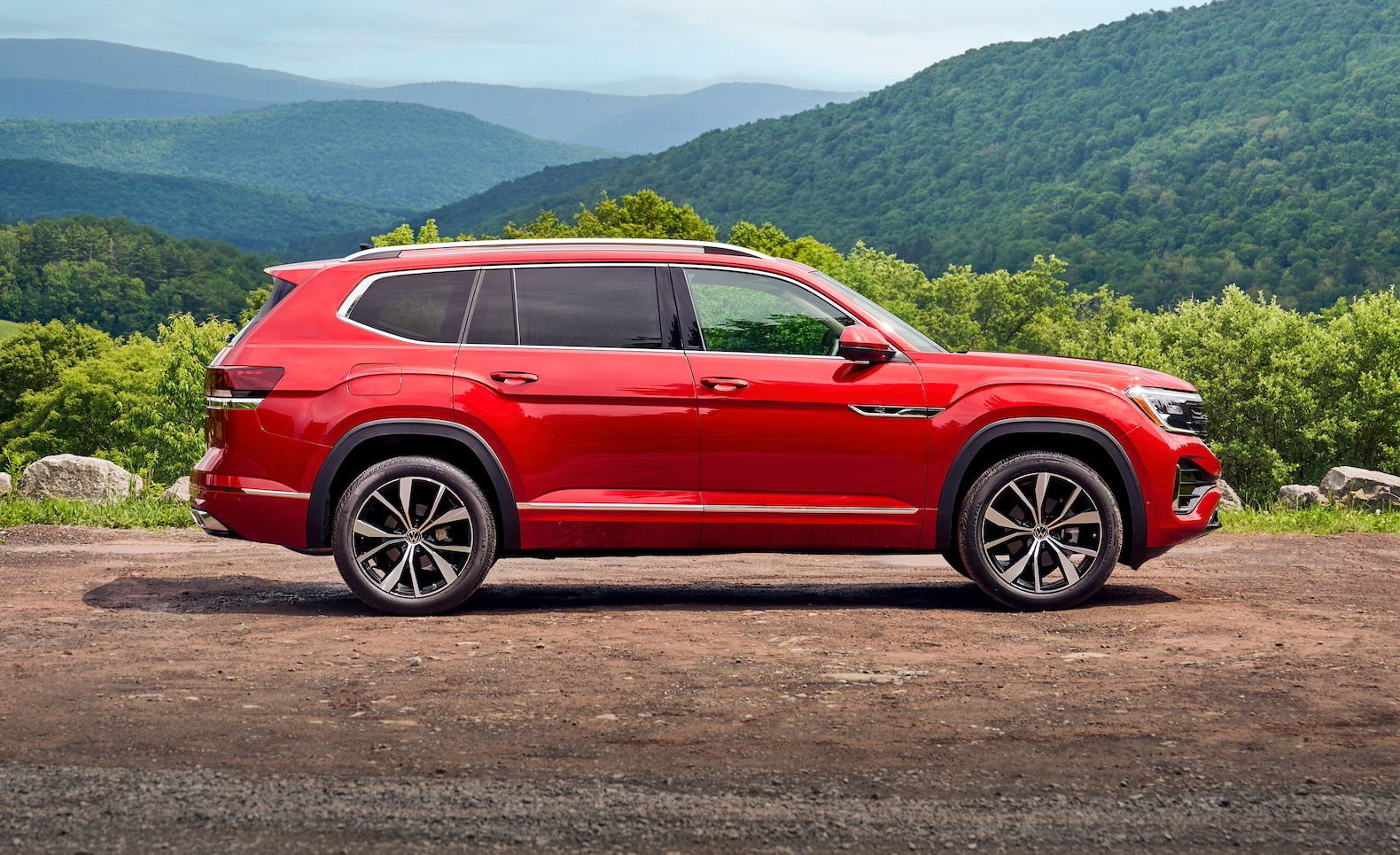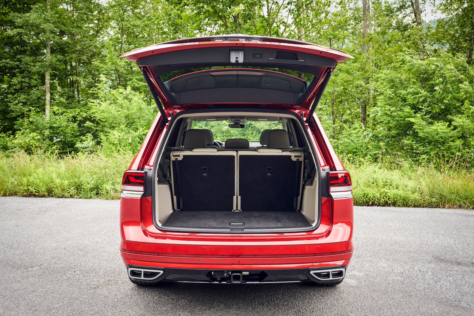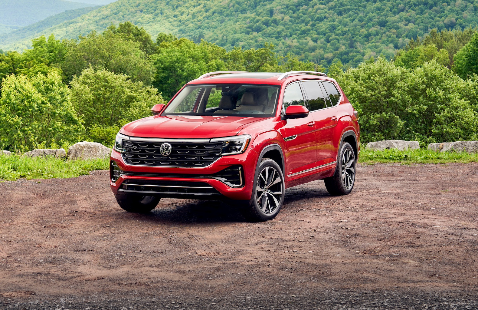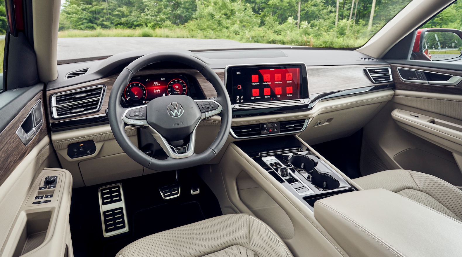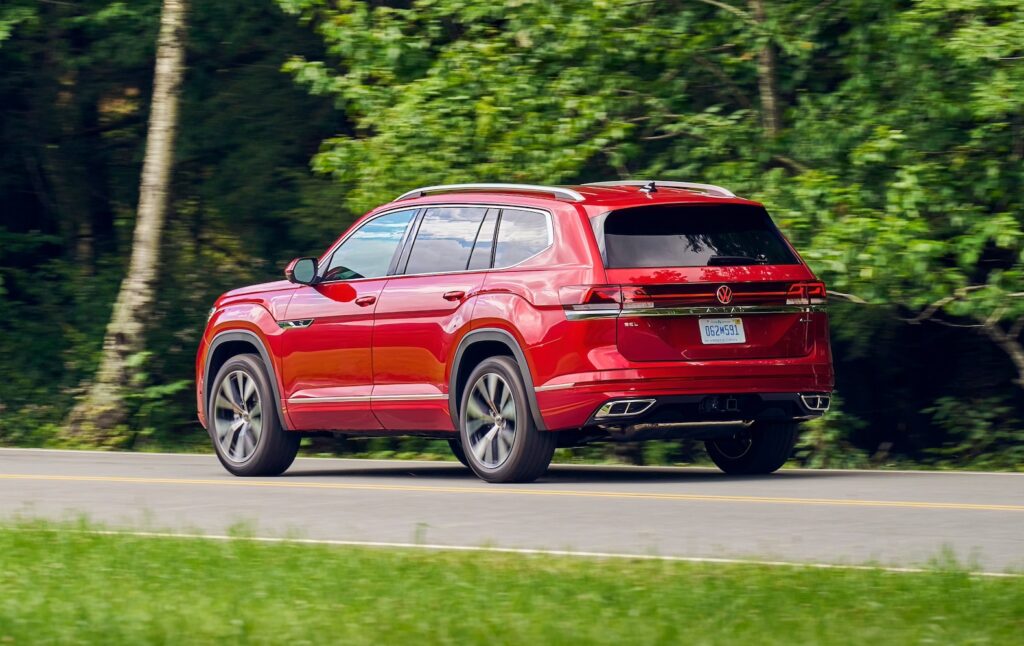 The instrument panel has been redesigned with a more sculptural feel. It features a 10.25-inch digital instrument cluster, and is anchored by a 12-inch touchscreen. There’s standard wireless charging, six USB-C ports with 45-watt fast charging, wireless Apple CarPlay, Android Auto and MirrorLink. But volume and tuning knobs have disappeared. Ditto a traditional transmission shifter. Since the Atlas now uses shift-by-wire, the space beneath the center console is perfect for stowing handbags or computer bags.