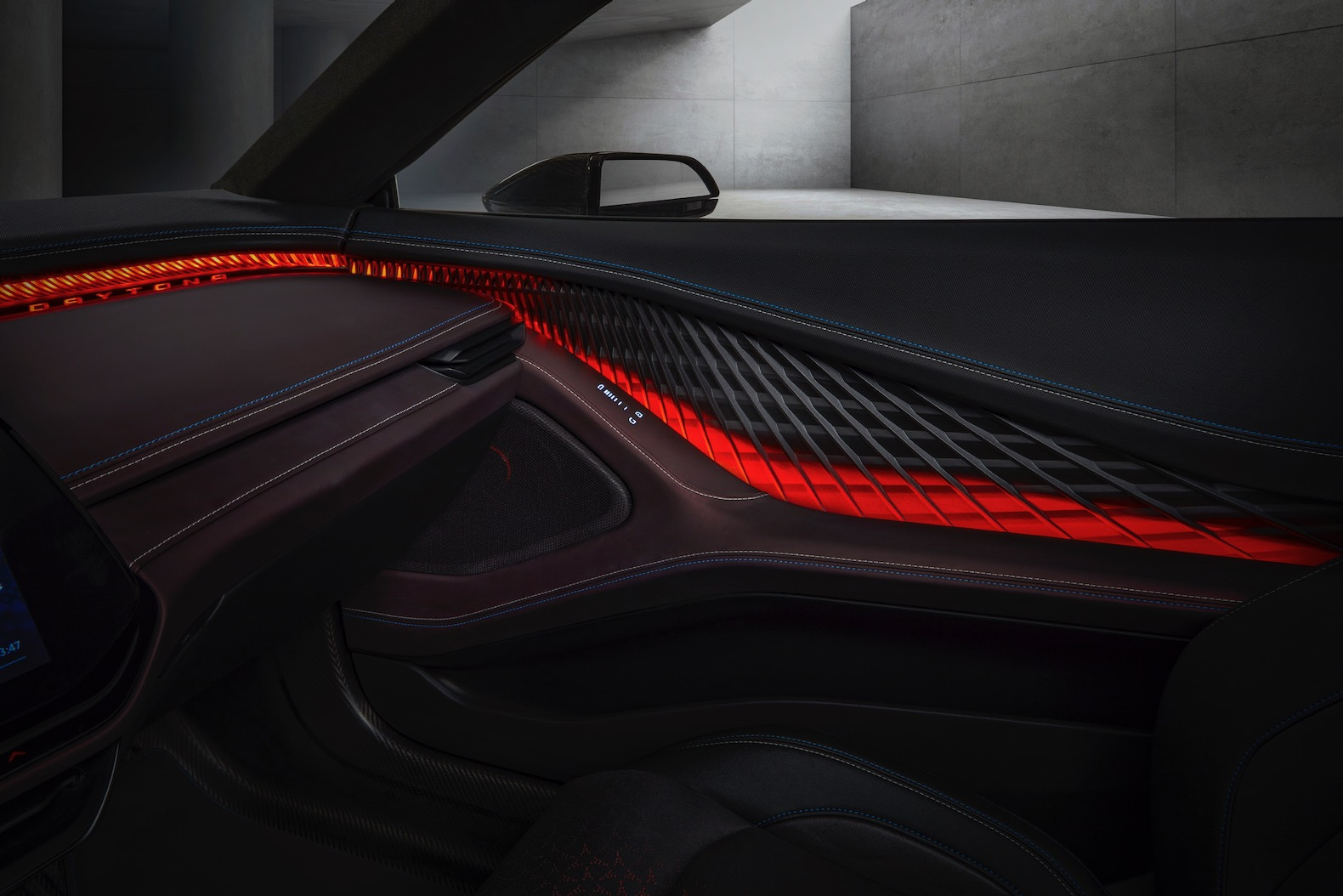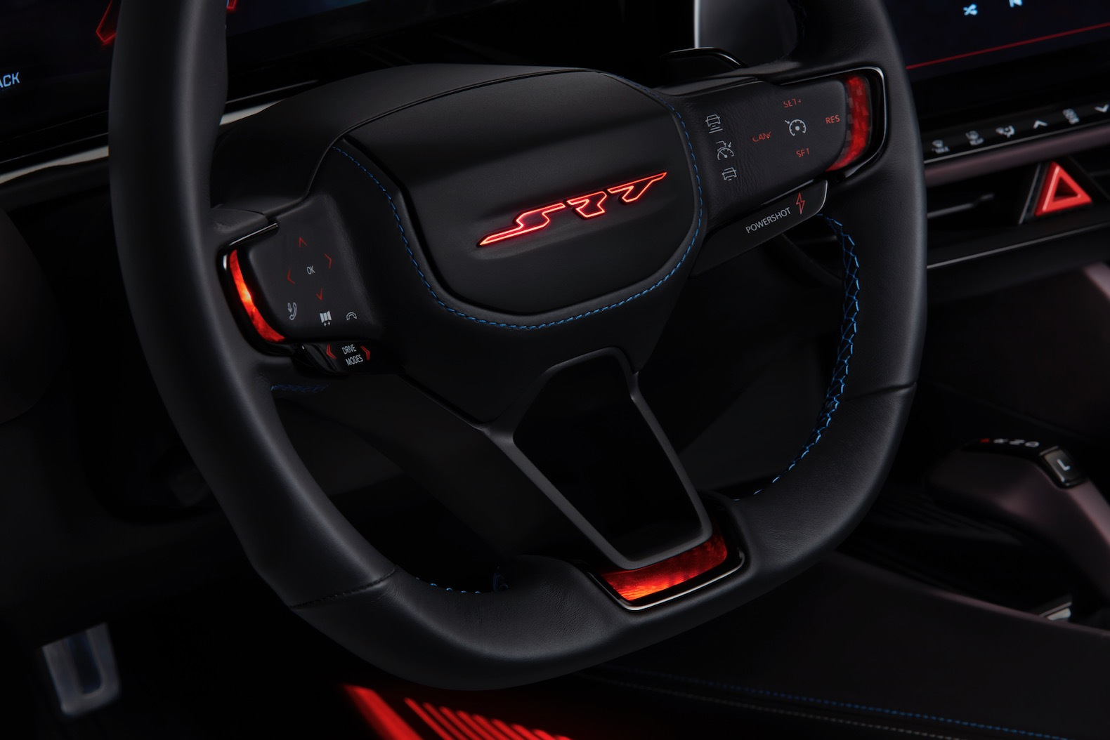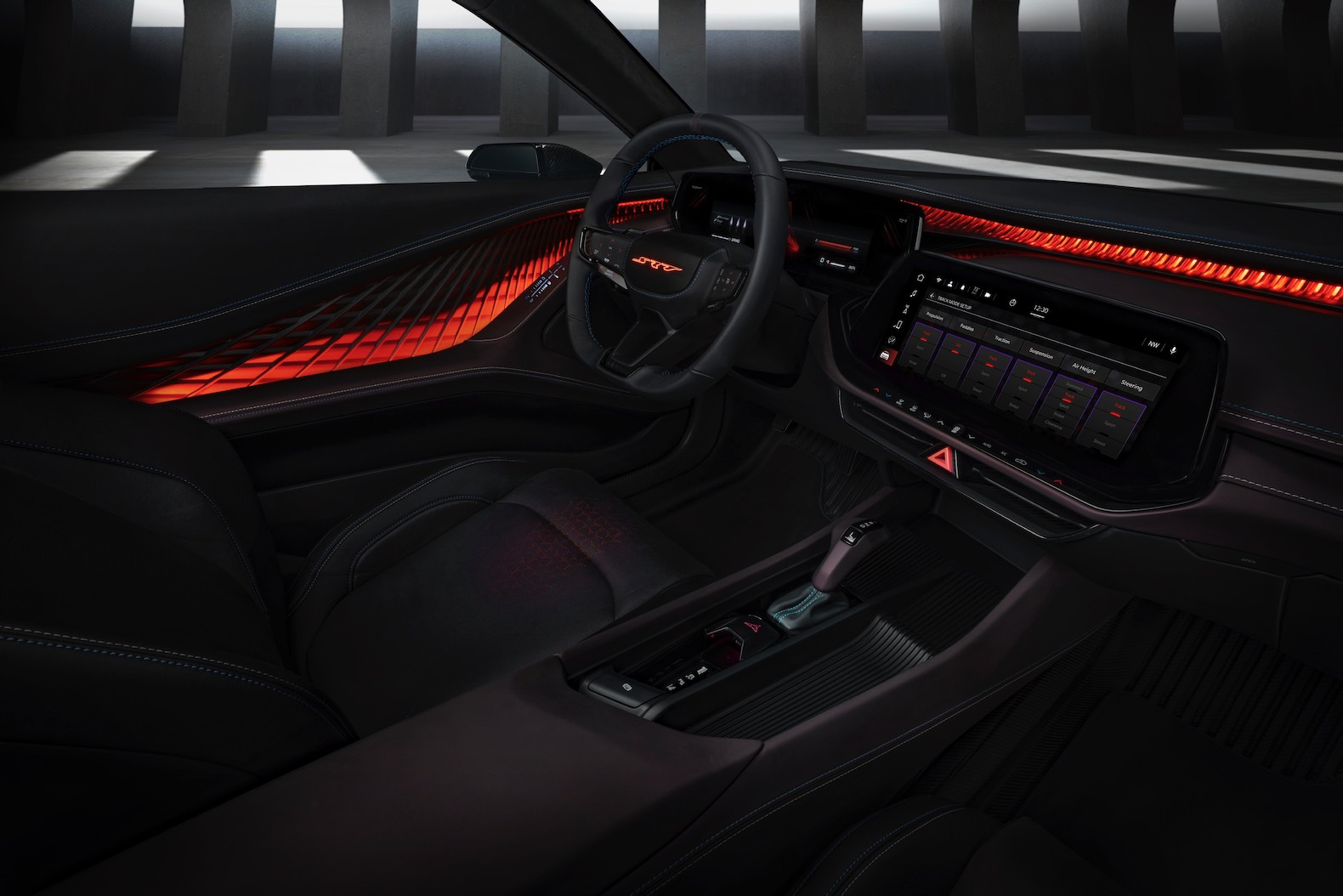 Dodge hasn’t released any big details about the concept’s electric powertrain, but it features an 800-volt electrical system called Banshee. That means that it will be able to charge at a 350-kW fast charger. The concept also has all-wheel drive and Dodge says that it’s faster than the current Hellcat. There’s also a PowerShot overboost button and lastly it has several drive modes: Slam, Drift, Drag and Donut.