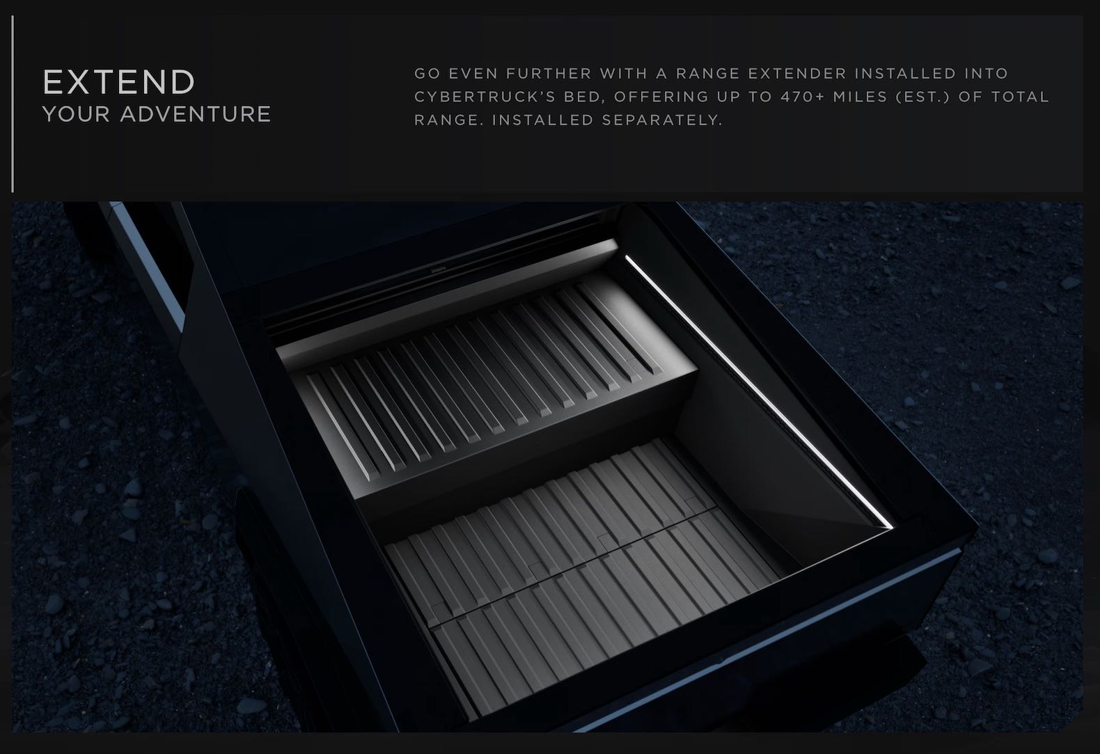 Interestingly, the Tesla CyberTruck will also be available with a range extender pack that rests in the Cybertruck’s bed, the trade-off being the loss of around one-third of the six-foot-long cargo box. Tesla claims this range extender can increase the Cybertruck’s range to about 470 miles, still short of the initial target of 500 miles when the truck was first previewed in 2019 but much closer than the production truck’s best available standard range of 340 miles. Interesting stuff.