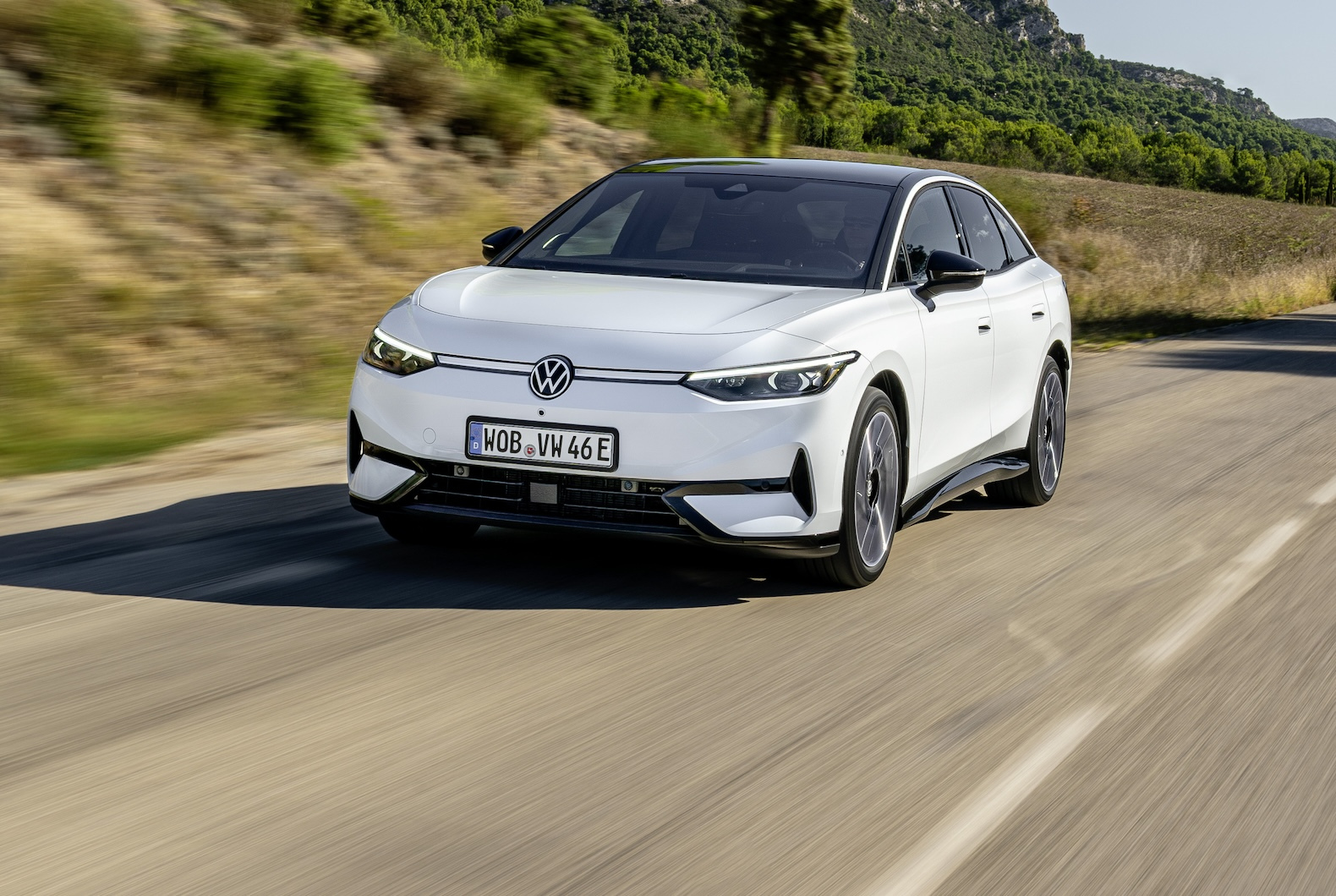 Volkswagen’s new electric sedan, the 2025 ID.7 was unveiled Monday. Boasting sleek coupe-like styling and an 82-kWh battery, the new sedan’s single motor delivers 282 horsepower and 402 pound-feet of torque to the rear wheels. The automaker says the ID.7 has a range of up to 386 miles based on optimistic WLTP cycle testing. While EPA numbers haven’t been released, a good guestimate would put the ID.7’s range at closer to 340 miles. The automaker says the Volkswagen ID.7 accelerates from 0 to 62 mph in 6.5 seconds and reaches a top speed of 112 mph.