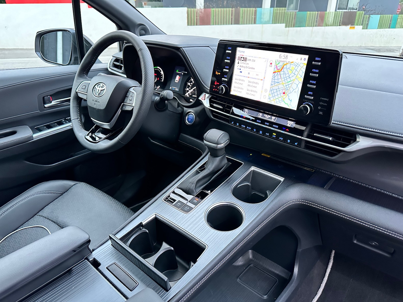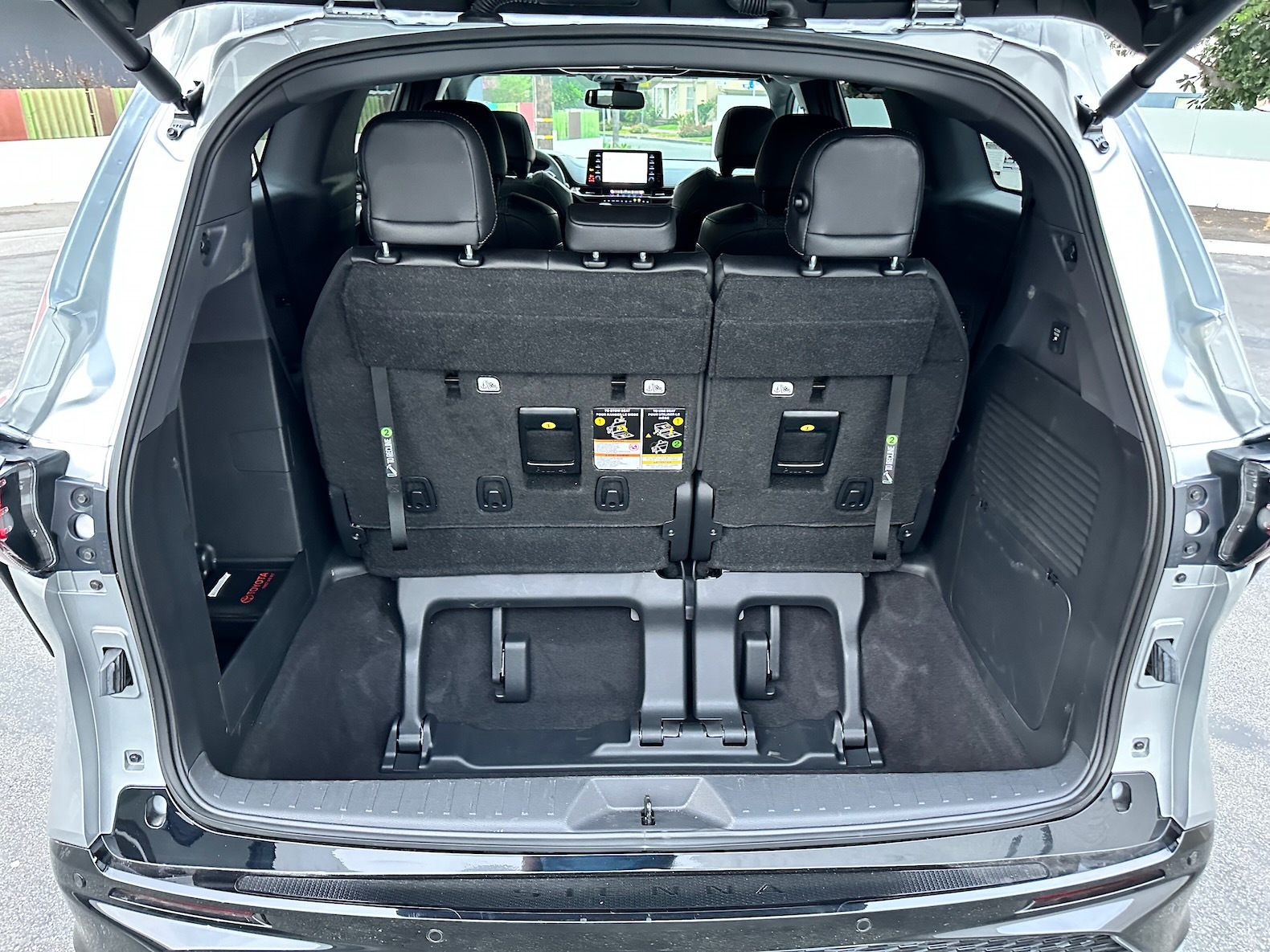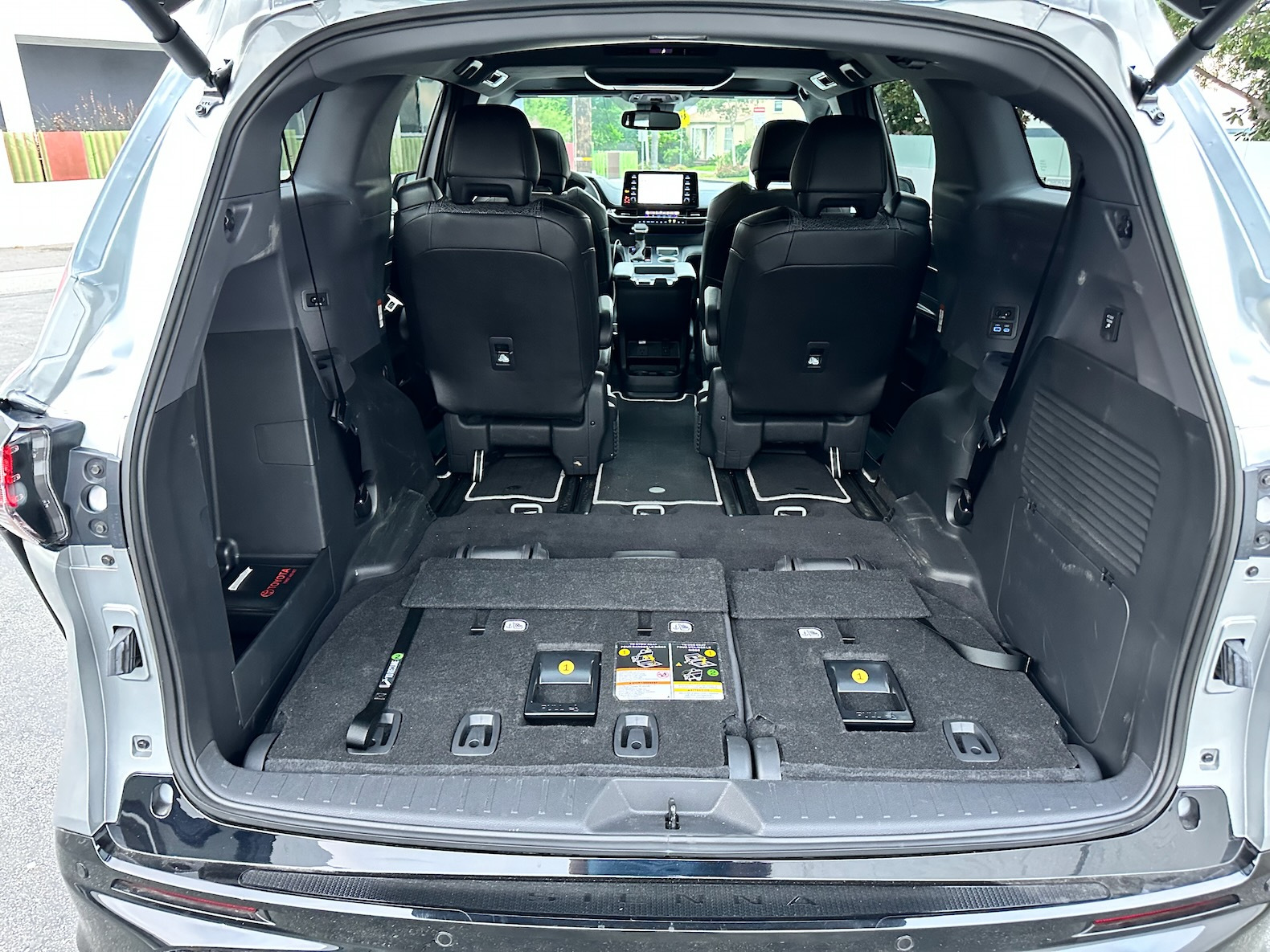 Inside, the Sienna has a modern dashboard, but it’s missing Toyota’s latest infotainment system. Available in seven- or eight-passenger configurations, it provides a flexible interior design with thoughtful details. The front seats are comfortable, with heating options, and the rear sliding doors can open with a foot gesture on certain trims. The third row also offers ample legroom for taller passengers.