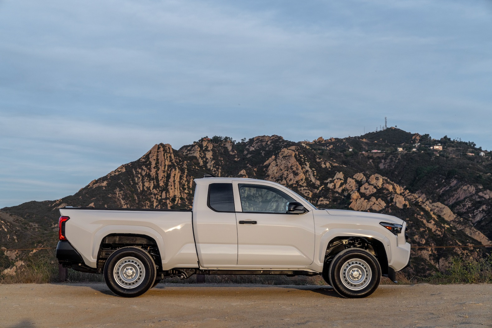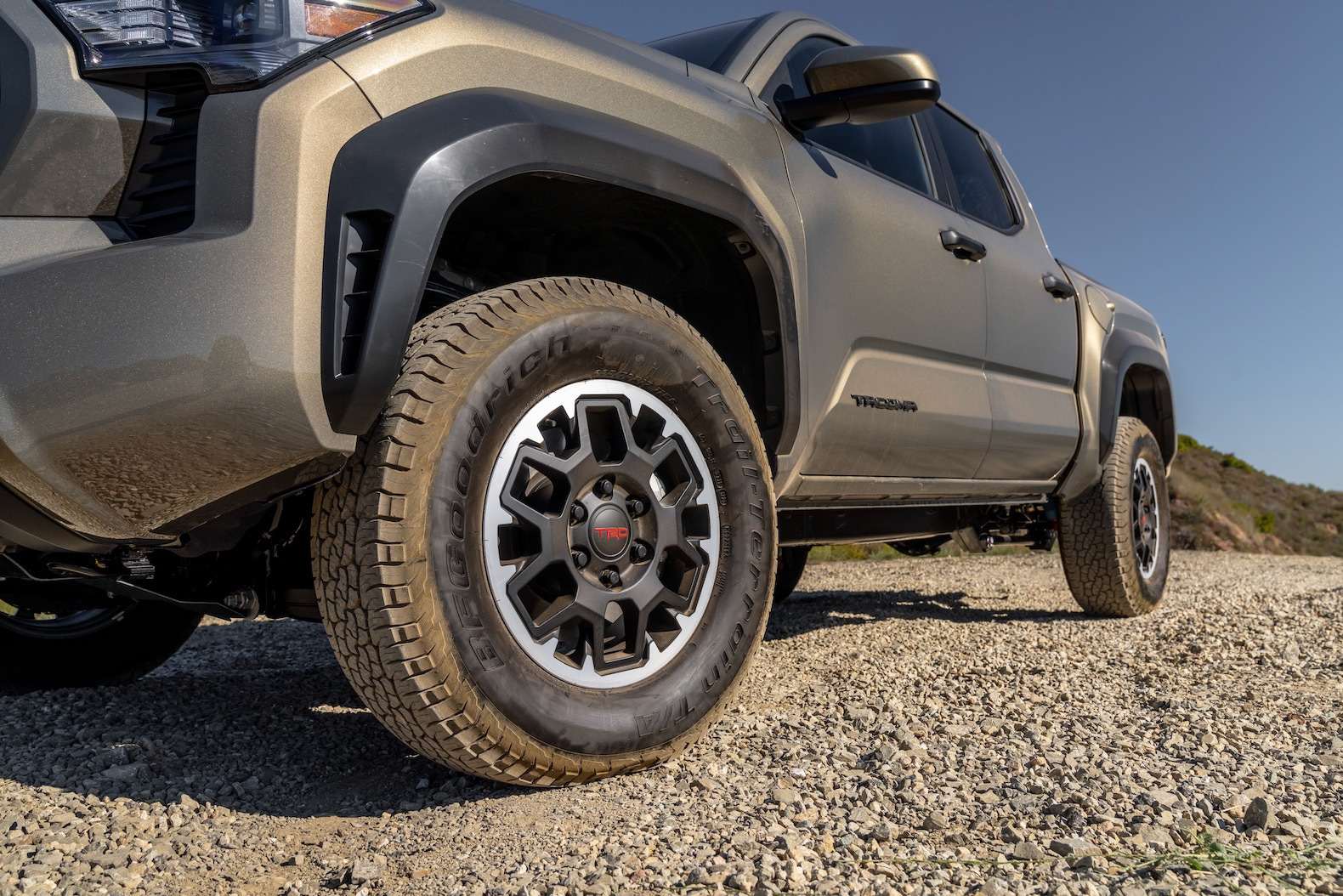 The 2024 Tacoma moves to a new platform, that’s shared with the larger Tundra. It’s now based on a version of the TNGA-F platform that’s also shared with the Sequoia and new Land Cruiser. The new platform features a boxed frame from end to end. Toyota also gave the suspension a nice upgrade with coil springs on crew cab models, although the extended cab version keeps leaf springs. Disc brakes at all four wheels also improve the stopping power.