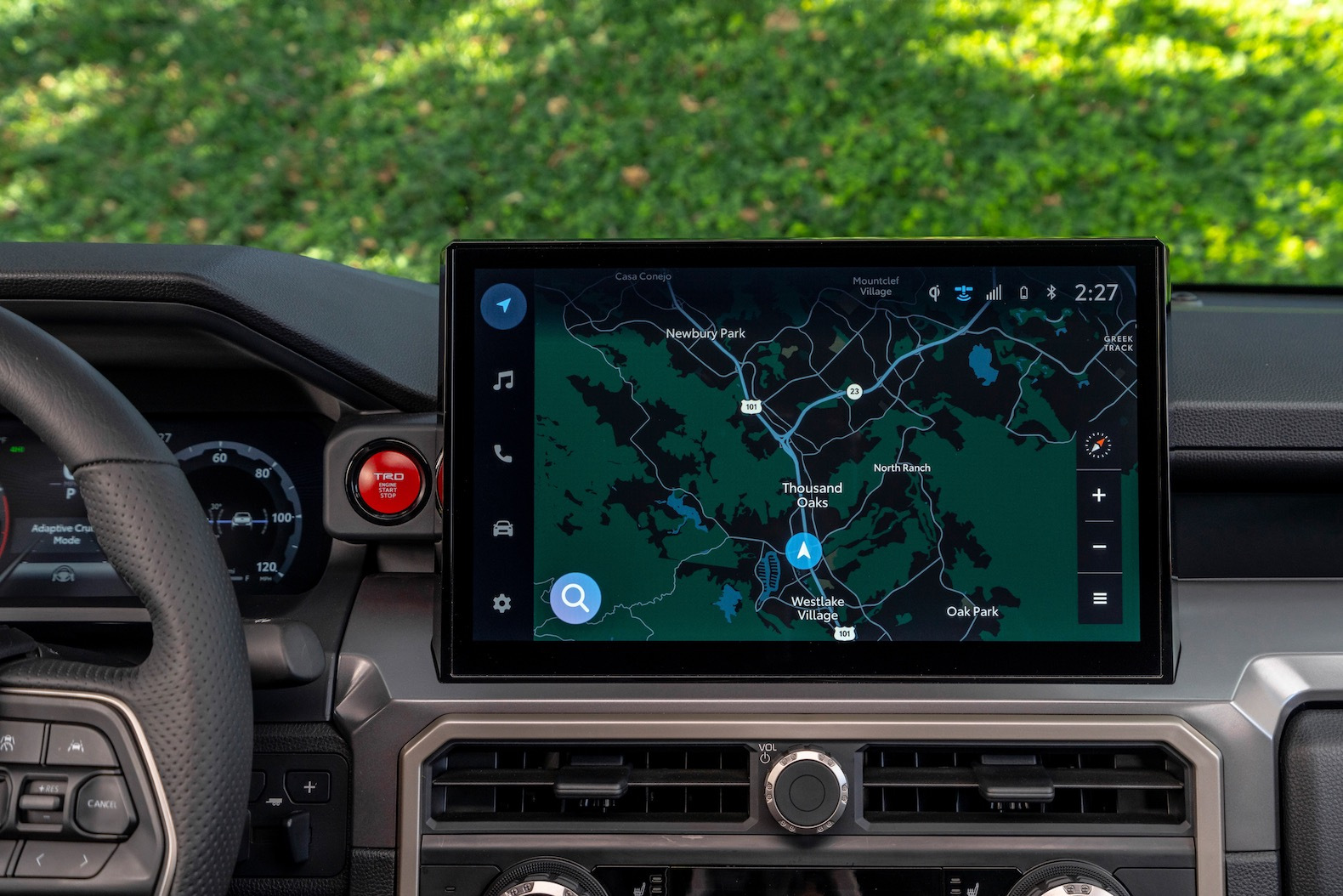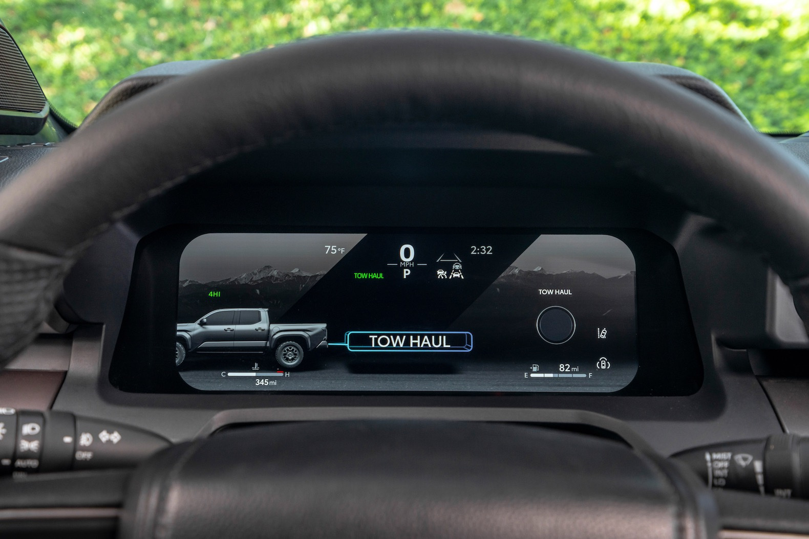 Toyota gave us the chance to check out the capability of the TRD Off-Road version on some dirt trails. The updated Crawl control off-road cruise control system is now more refined and the optional electronic disconnecting front anti-roll bar improves articulation when disconnected. The Off-Road version also adds 33-inch tires with 17-inch wheels, skid plates, an electronic locking rear differential and multiple terrain modes. If you want even more off-road capability there are the TRD Pro and Trailhunter versions, which we haven’t driven yet, since Toyota did not let us drive the hybrid versions of the Tacoma.