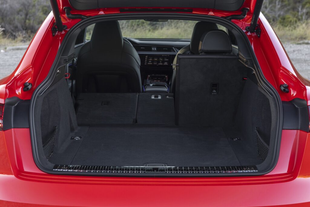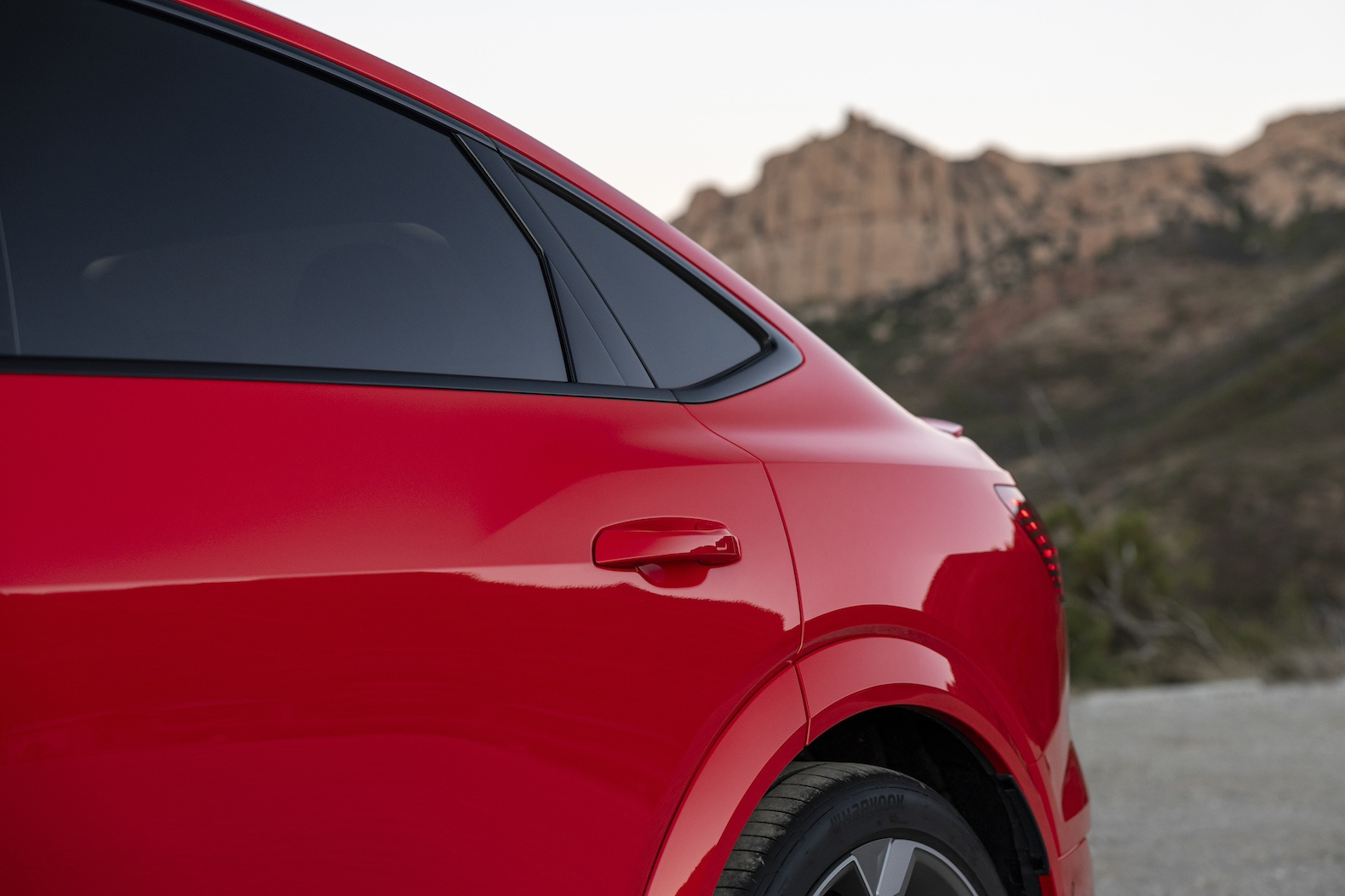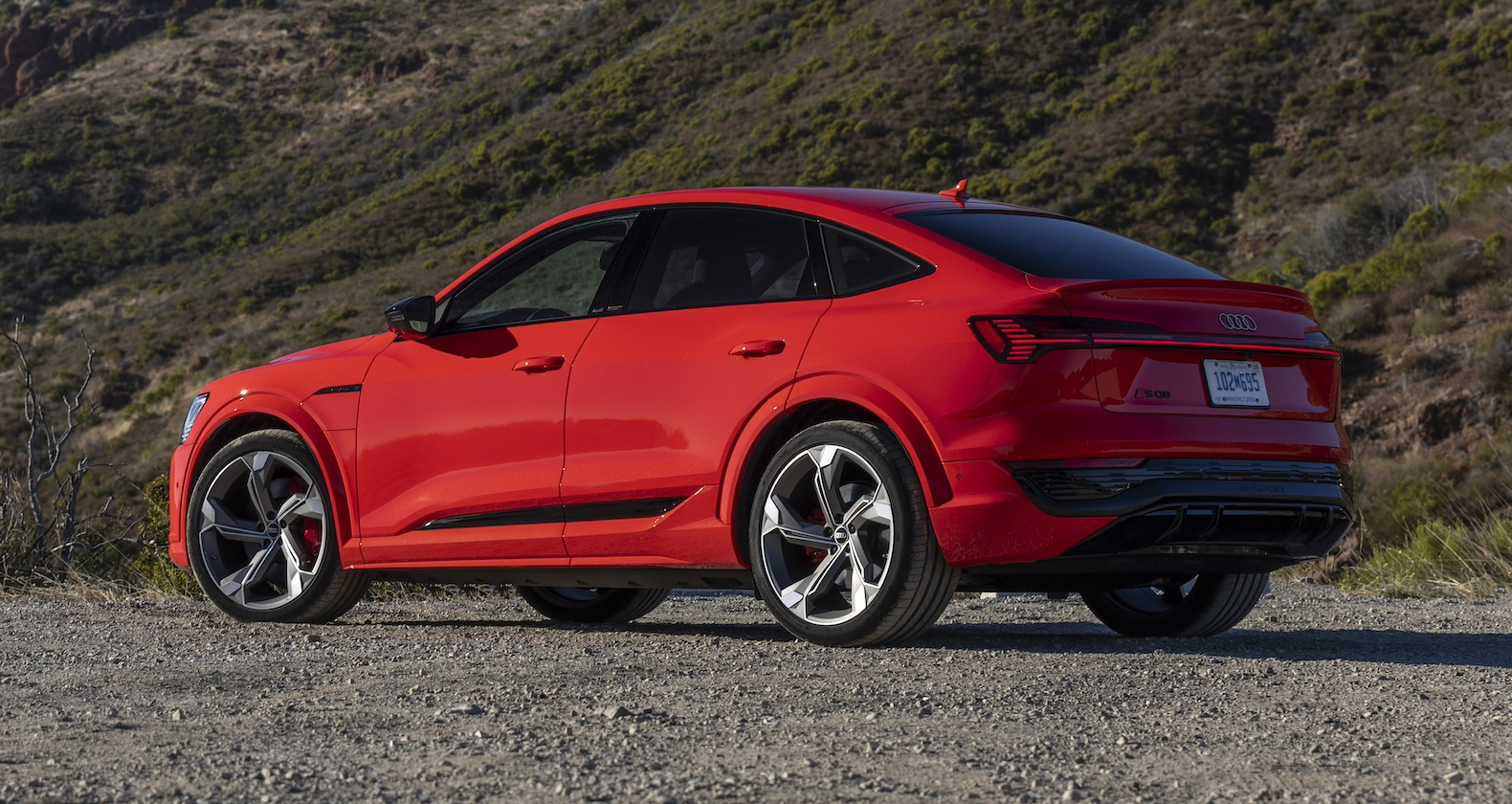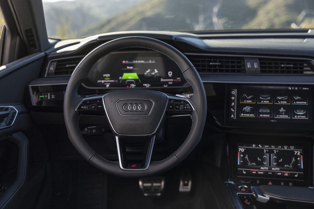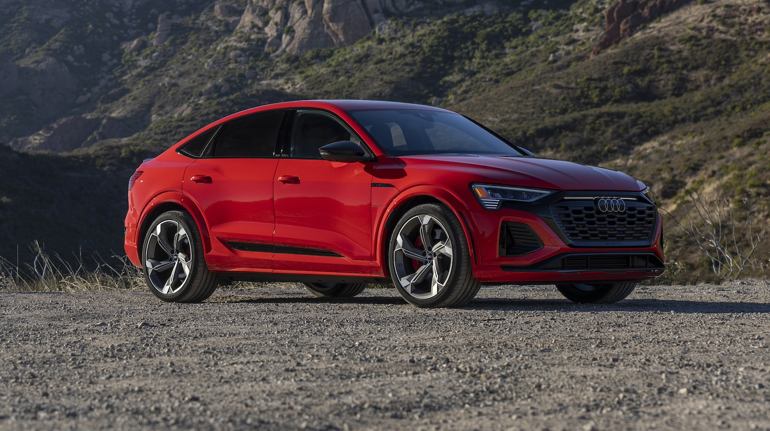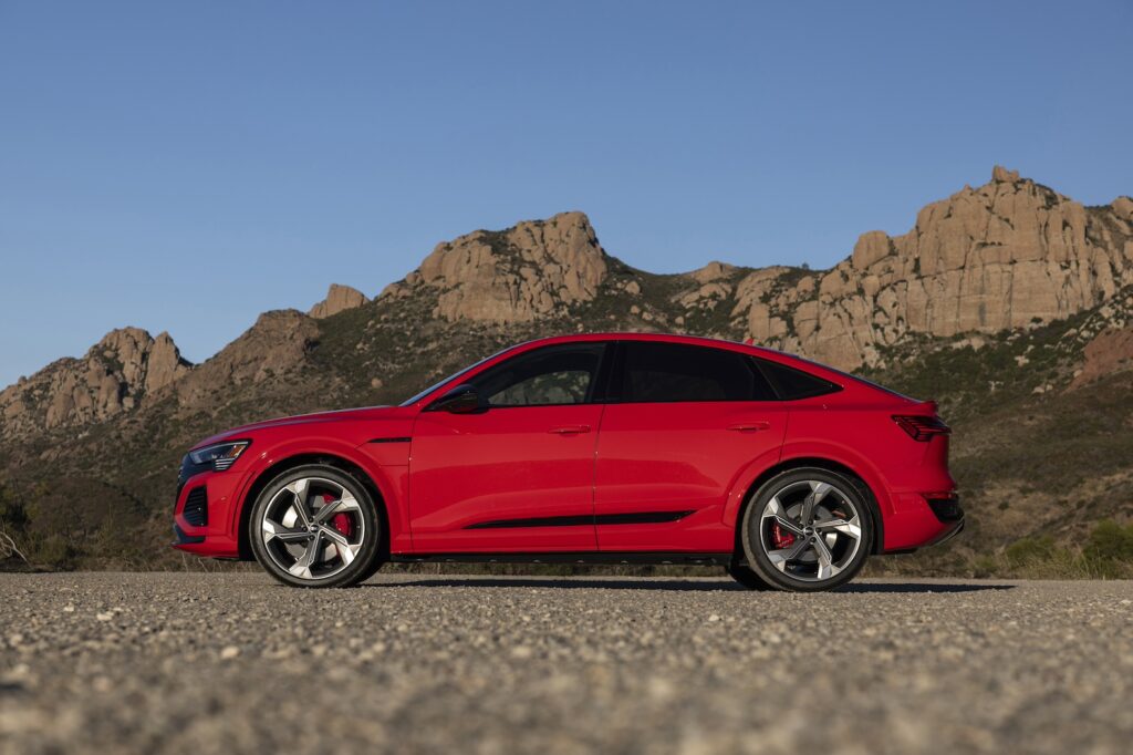 It’s the sportiest rendition of Audi’s largest battery-electric SUV, with one electric motor on the front axle and two on the rear, delivering all-wheel drive. Altogether, the three motors generate 496 horsepower and 718 pound-feet of torque from its 106-kWh battery. Compared to the base Q8 e-tron and its 86.5-kWh battery, there’s an extra 94 horses and 228 pound-feet of torque on tap. That’s enough muscle to bring up 60 mph in 4.2 seconds on the way to a top speed of 130 mph. And it can tow 4,000 pounds with up to a 400-pound tongue weight.