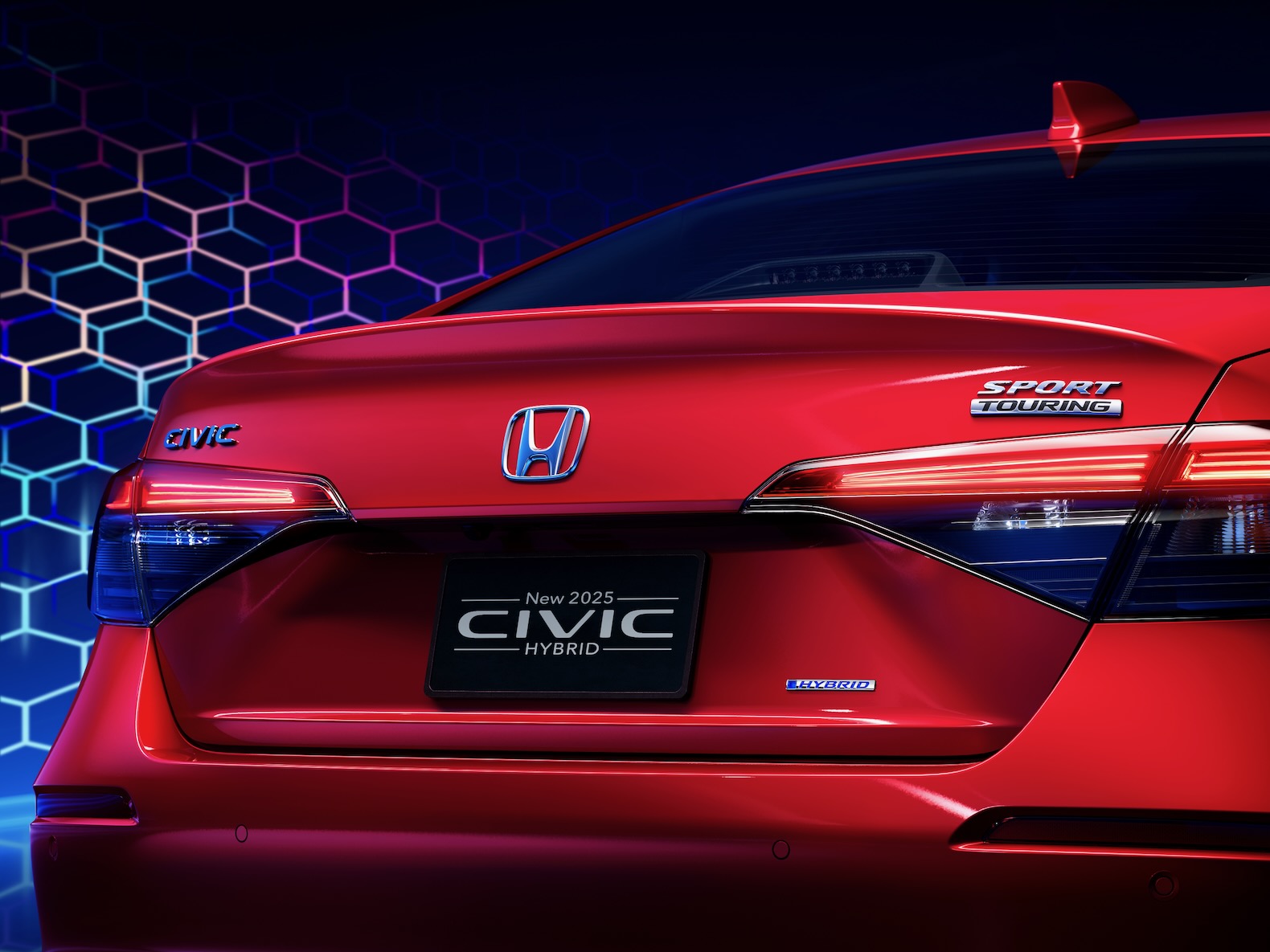 The entire 2025 Civic lineup is getting a facelift and updated features. The two photos of the Civic hybrid reveal a slightly updated face. Honda expects the Civic hybrid to account for 40 percent of all Civic sales.