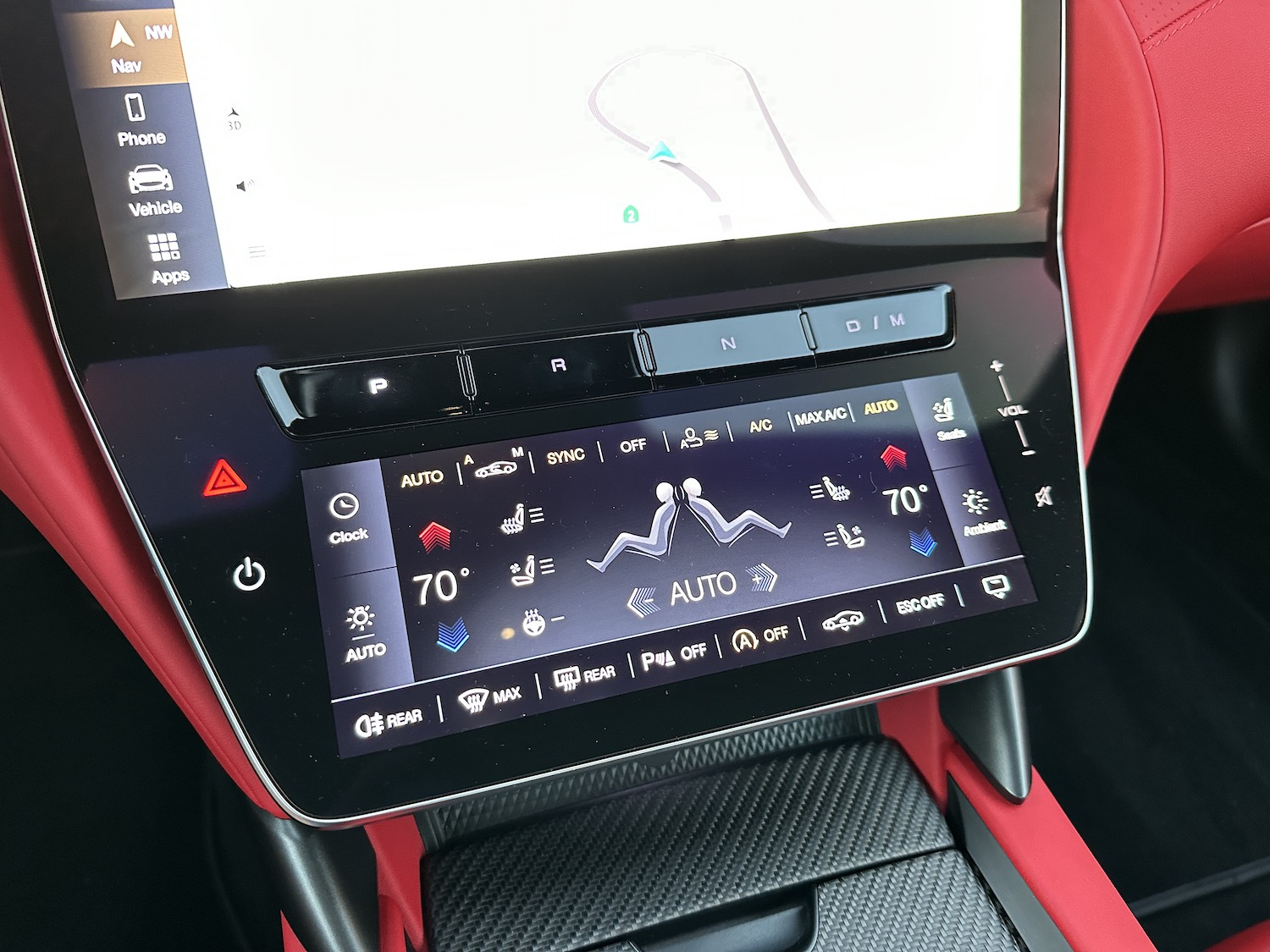 A digital gauge cluster offers reconfigurable screens with appealing colors and fonts, and thank goodness, the central infotainment display runs an updated tech suite that works super well. Maserati’s multimedia software responds quickly to inputs and supports wireless Apple CarPlay and Android Auto. The only thing that’s a little convoluted is the operation of the second, lower screen; switching between the control panels for things like ambient lighting and climate controls is somewhat confusing at first.