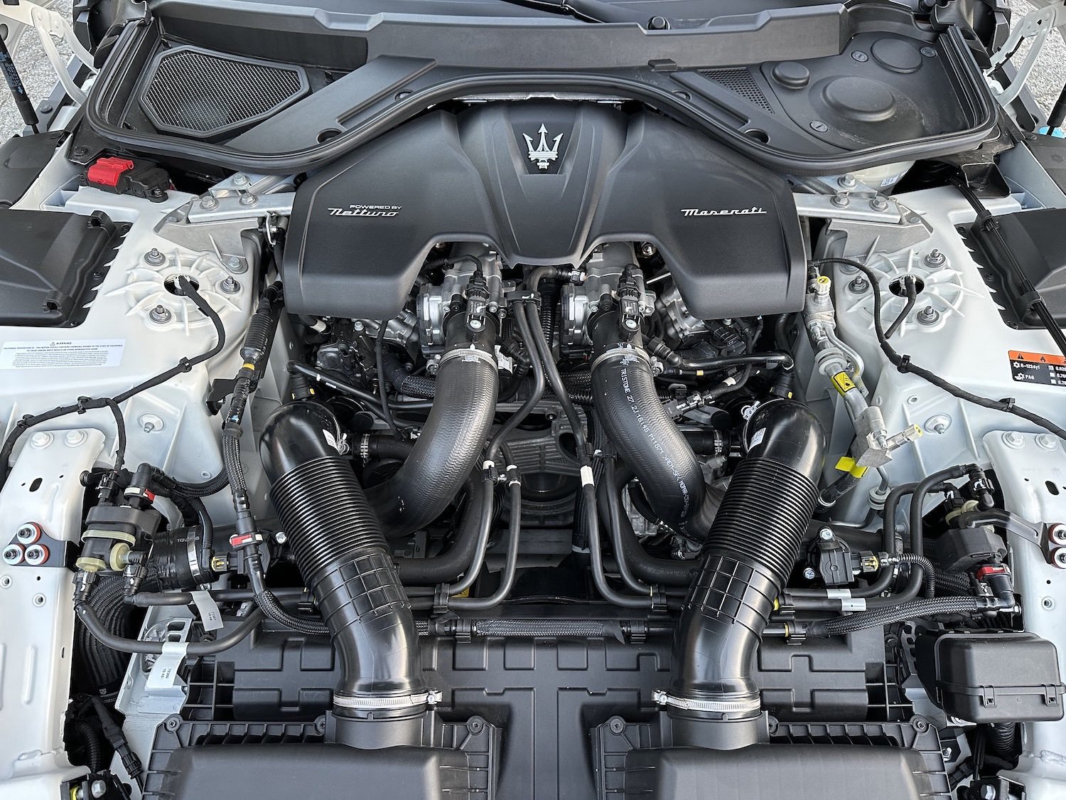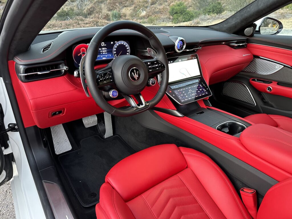 Maserati’s two initial GranTurismo offerings are powered by the same 3.0-liter twin-turbo V6 Nettuno engine that you’ll find in the MC20, just detuned for this less-hardcore coupe. The more sporting GranTurismo Trofeo tested here offers 550 horsepower and 479 pound-feet of torque, delivered to the rear wheels through a ZF-sourced 8-speed automatic transmission. The less-powerful GranTurismo Modena detunes things slightly to 490 hp, and if internal combustion isn’t really your jam, Maserati will soon launch the GranTurismo Folgore, powered by a 750-hp electric powertrain.